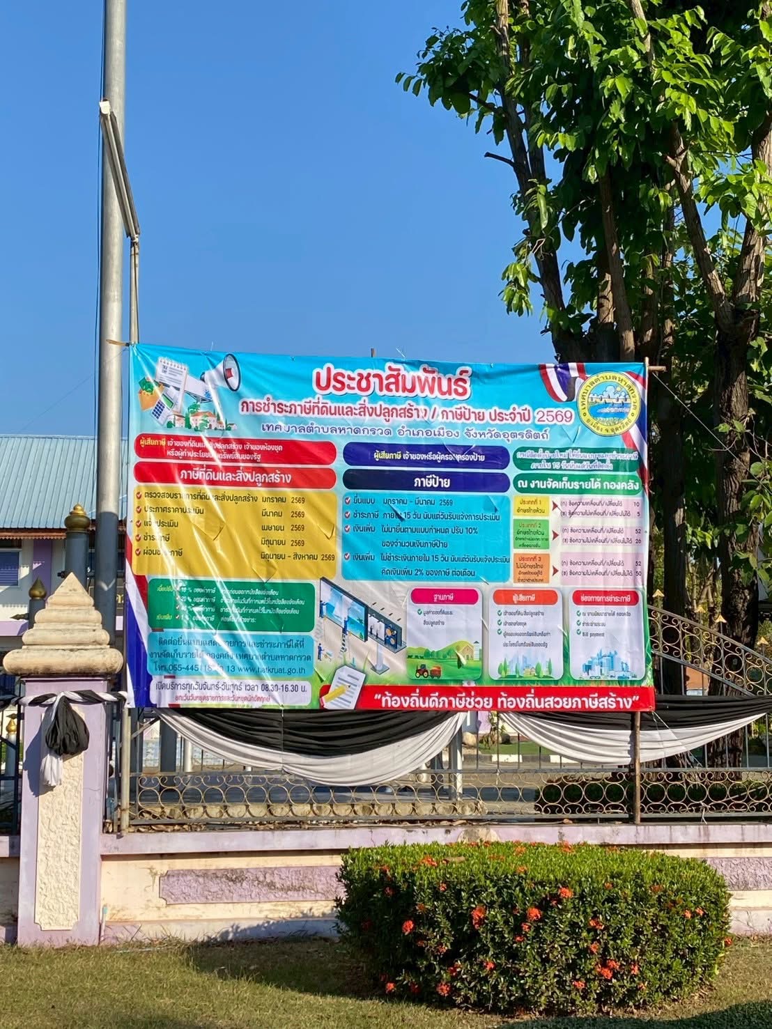 กองคลังเทศบาลตำบลหาดกรวด ลงพื้นที่ออกติดป้ายประชาสัมพันธ์ภาษีที่ดินและสิ่งปลูกสร้าง และภาษีป้าย ประจำปี 2569