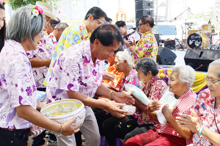 >>พิธีการสรงน้ำพระพุทธรูป และผู้สูงอายุตำบลหาดกรวด